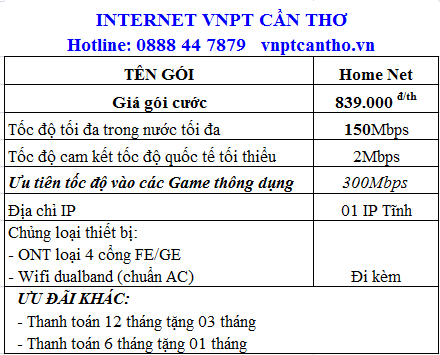 VNPT Cần Thơ là một trong những nhà mạng đi đầu trong lĩnh vực Internet Cáp quang hiện đại nhất và đang là đơn vị có thị phần lớn nhất tại Cần Thơ hiện nay. VNPT Cần Thơ đang không ngừng mở rộng và phát triển mạng lưới của mình với nhiều gói cước hấp dẫn dành cho khách hàng. Trong đó, Internet Cáp quang là một trong những dịch vụ Internet thu hút được sự chú ý của khách hàng.